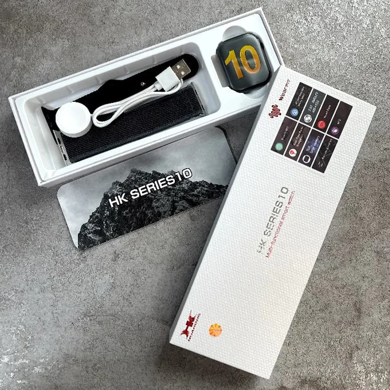 ابعاد 46.7*40*11.2 میلی متر و وزن حدود 55 گرم دارد.بدنه ساعت هوشمند HK SERIES10 از آلیاژ روی ساخته شده در حالی که بند آن سیلیکونی است. HK SERIES10 دارای صفحه نمایش 2.02 اینچی AMOLED با وضوح 520 * 485 پیکسل است. ساعت هوشمند HK SERIES10 دارای یک بلندگو و میکروفون است که به شما امکان می دهد مستقیماً از طریق ساعت هوشمند تماس برقرار کنید. ویژگیهای دیگر عبارتند از مانیتور اکسیژن و فشار خون، حالت های ورزشی، قطبنما، ChatGPT، پیشنمایش عکس زنده، یافتن تلفن و بسیاری موارد دیگر است. این ساعت هوشمند دارای ظرفیت باتری 295 میلی آمپر ساعتی با 2 تا 5 روز استفاده معمولی و 7 روز زمان آماده به کار می باشد. <<محصول به صورت پلمپ ارسال میشود >>.شارژ اولیه 3 ساعت و دفعات بعدی حدود 2 ساعت شارژ کامل میشود .<< حتما از آدابتور های 1یا 2 آمپر معمولی برای شارژ استفاده شود و به هیچ عنوان از شارژر های فست یا آمپر بالاتر استفاده نشود >>